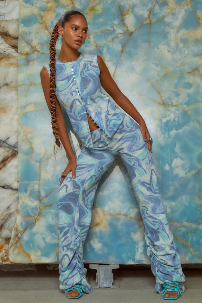 Knitwear | Blue Marble Print Ruched Hem Printed Knit Joggers – Jaded London Womens