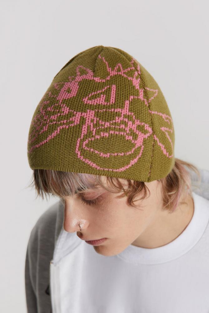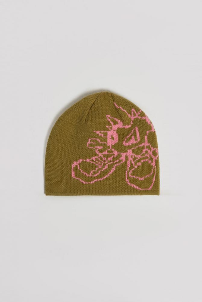 Descriptionpelo Spike Beaniefitted Skull Beanie Cast Off Hem No Turn Up Pelo Rosso Spike Mascot Placement Intarsia Khaki And Pink Colourway Product Code: Jma3351 …