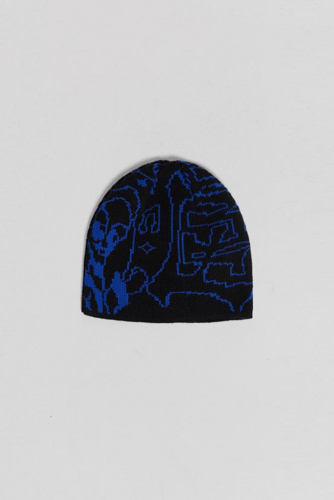 Descriptionpelo Tattoo Beanie Fitted Skull Beanie Cast Off Hem No Turn Up Pelo Rosso Allover Tattoo Print Black And Blue Colourway Product Code: Jma3350 …