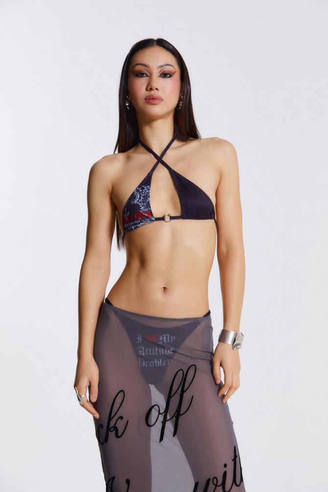 Descriptiongothic Print Halter Triangle Bikini Top Matching Bikini Bottoms Available Product Code: Jsbt896