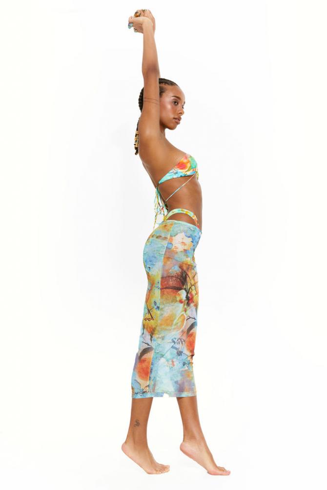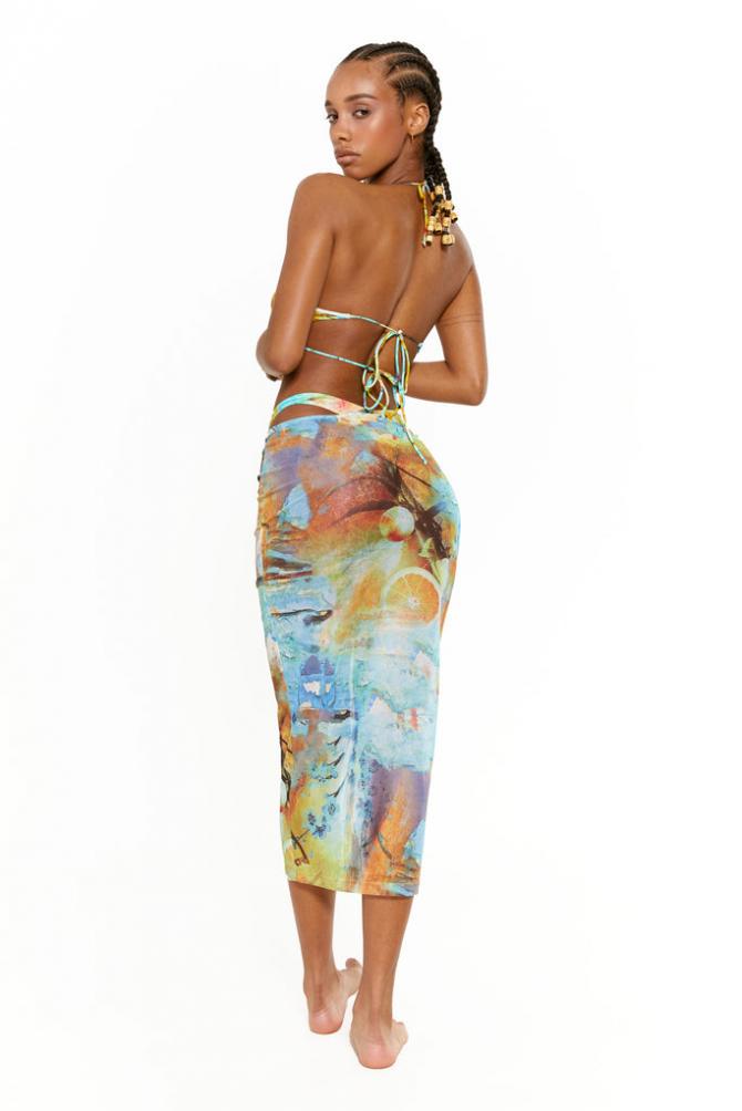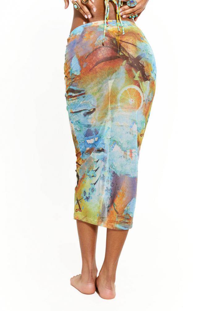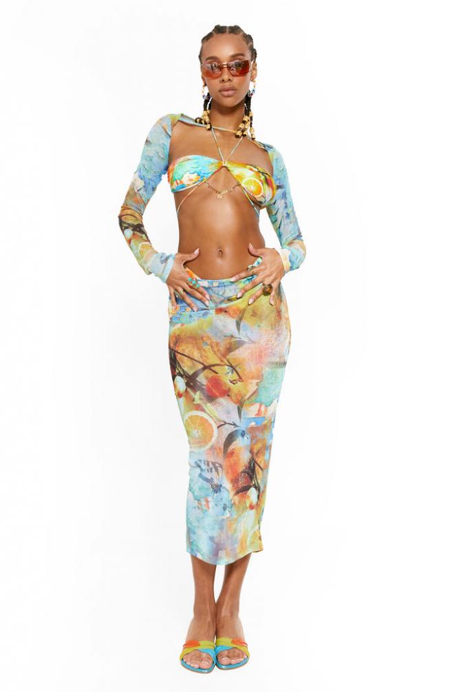 Descriptionorange Print Mesh Maxi Skirt Matching Sleeves Available Orange Printed Mesh Maxi Length Large Scale Print Positioning May Vary On Each Garment Model Is 5 Ft 8 And Wears A Size S …