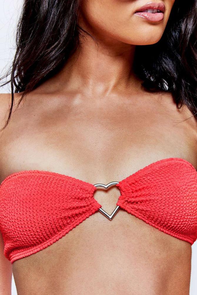 Coral Crinkle Bandeau Top With Heart Ringwomens…