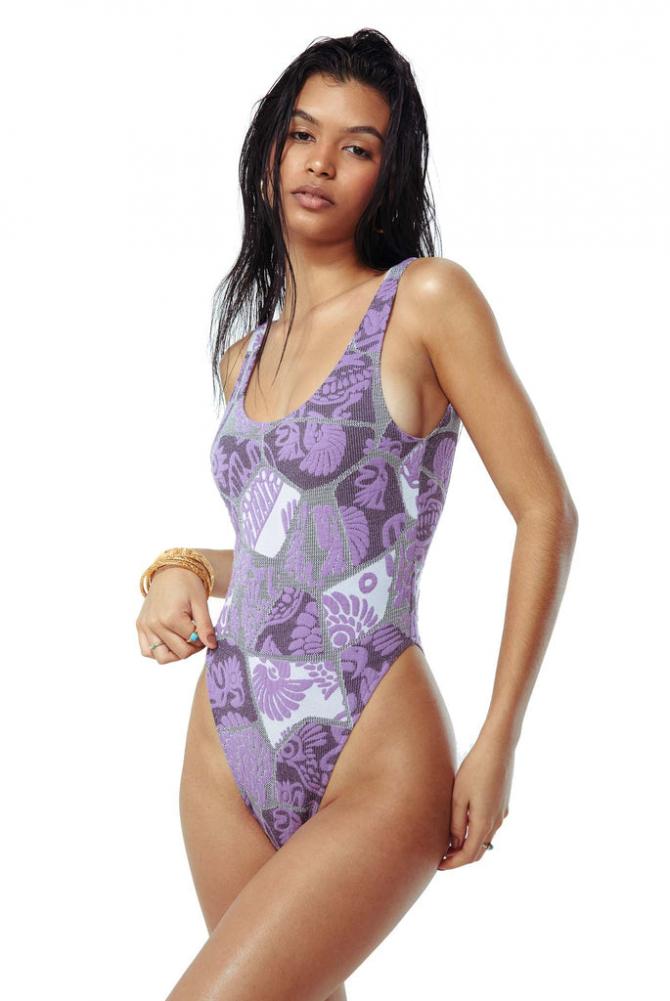 Descriptionpurple Jacquard 80’S High Leg Swimsuit