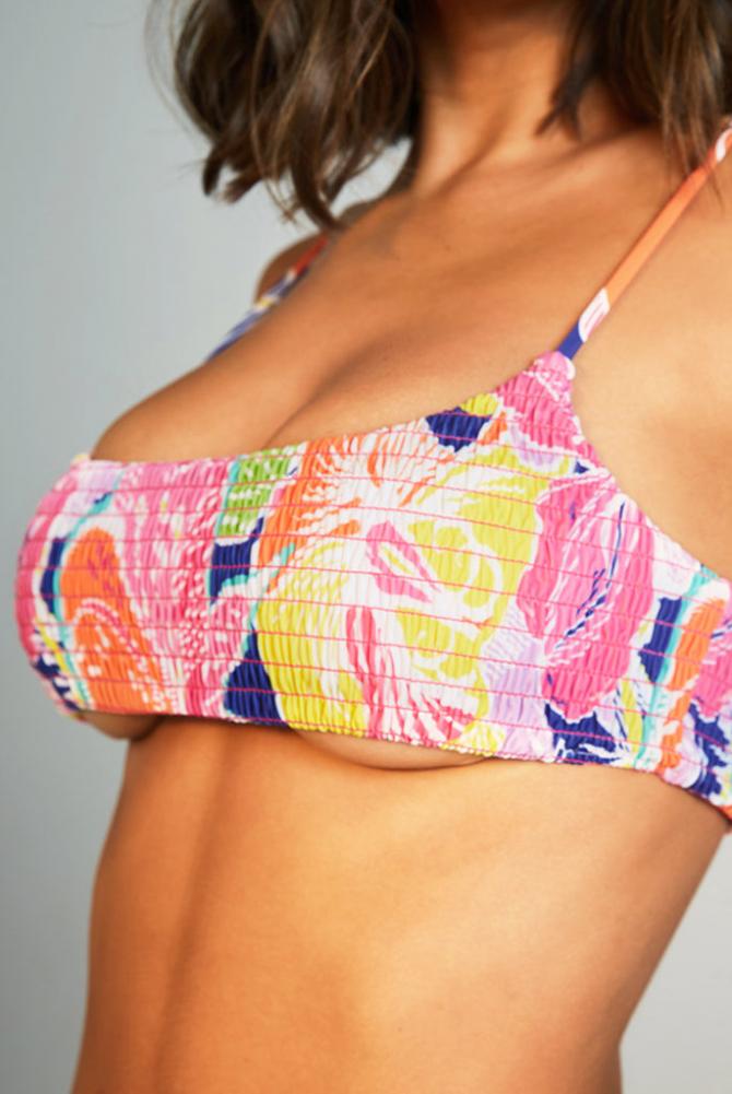 Description Floral Feels! Add A Pop Of Colour To Your Swimwear This Season Rocking Our Vintage Floral Shirred Square Neck Bikini Top!