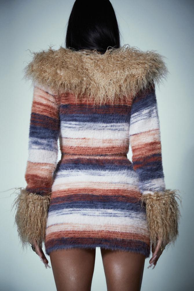 Descriptionstripe Mohair Cardigan With Fur Collar & Cuffs