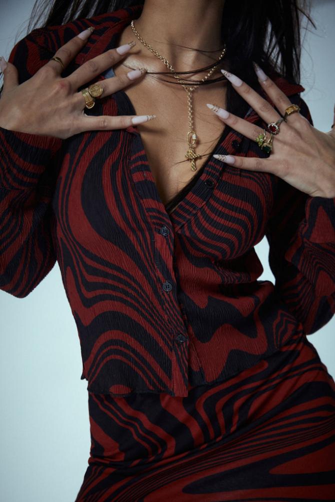 Descriptionred & Black Swirl Print 90’S Fitted Plisse Pleat Shirt