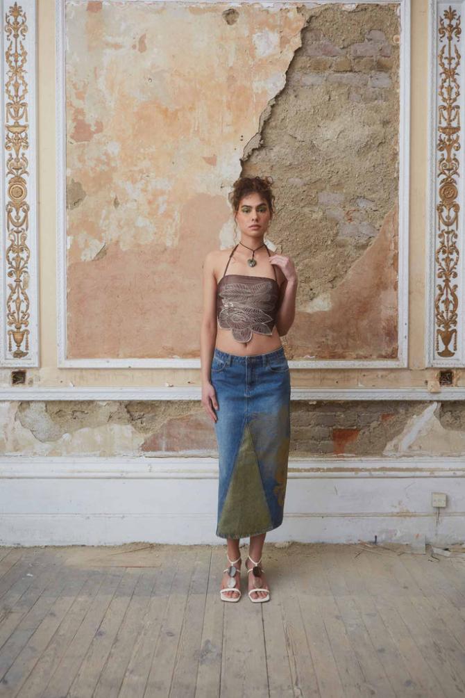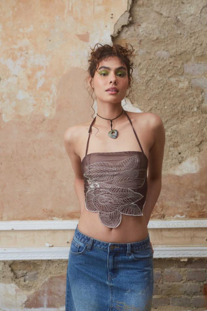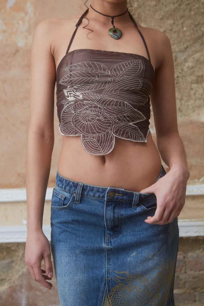 Descriptionfloral Mesh Embroidered Halter Neck Corset Top