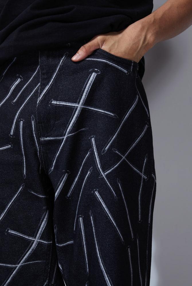 Descriptionnail Print Jeansnon-Stretch Printed Denimfive-Pocket Stylingbelt Loops At Waistbandzip Fly Fasteningmetal Rivets Inside Leg Measures 81Cm    …