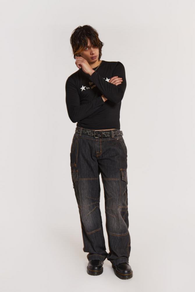 Descriptionblack Chambray Denim Cargos Washed Black Broken Twill Denimproduct Code: Jmje3062