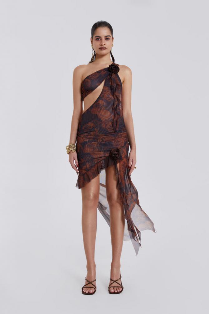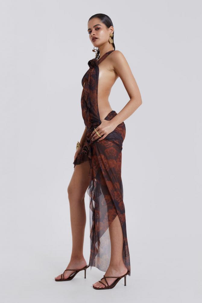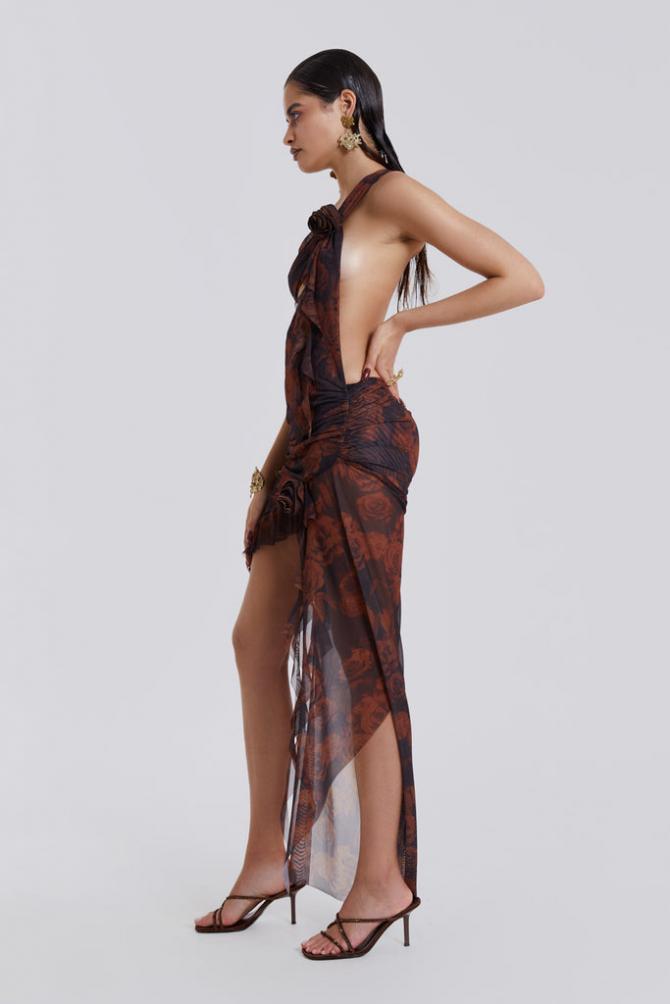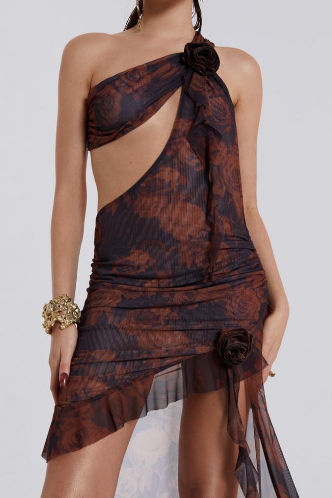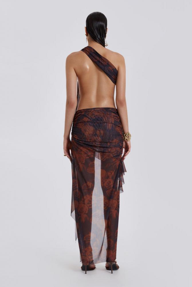Descriptiongrunge Rose Print One Shoulder Draped Rosette Maxi Dress Grunge Rose Print Product Code: Jwd2583
