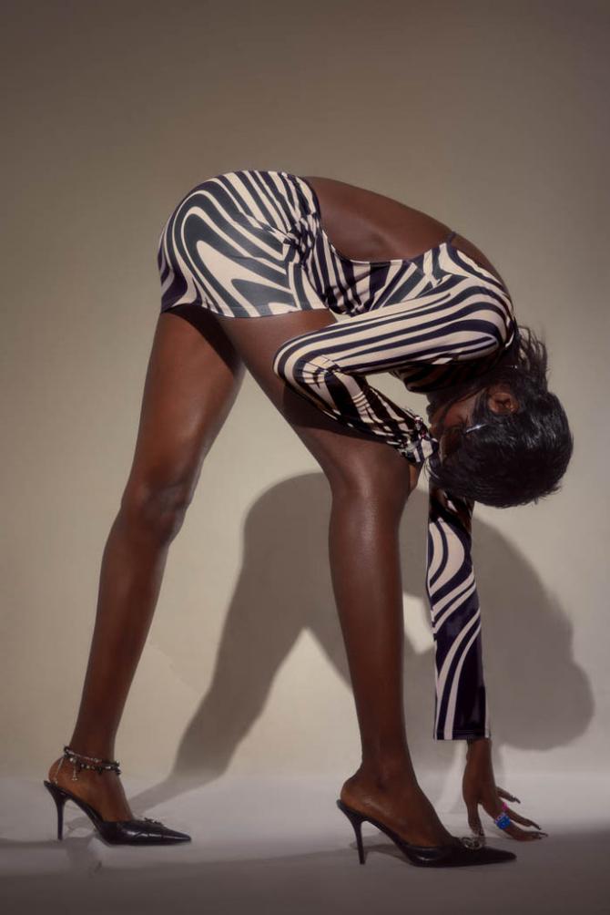 Descriptionnude & Black Warped Lines Print Backless Long Sleeve Mini Dress  Nude & Black Warped Lines Print Backless Detail Long Sleeves Mini Length  Thong Knicker Not Included  Figure Hugging Bodycon Fit  Model Is 5 …
