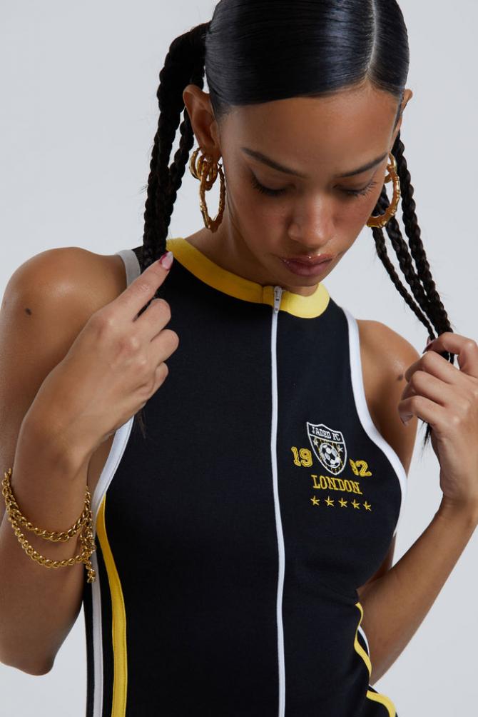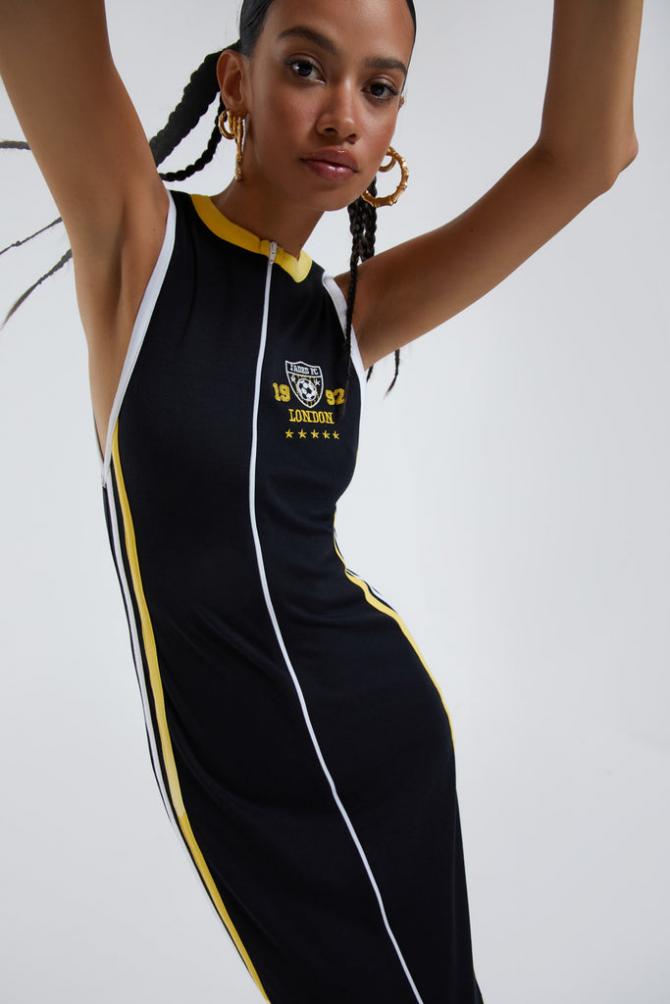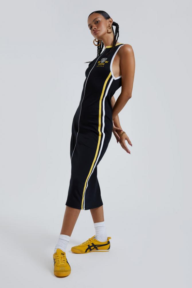 Descriptionblack Sporty Zip Up Front Maxi Dress