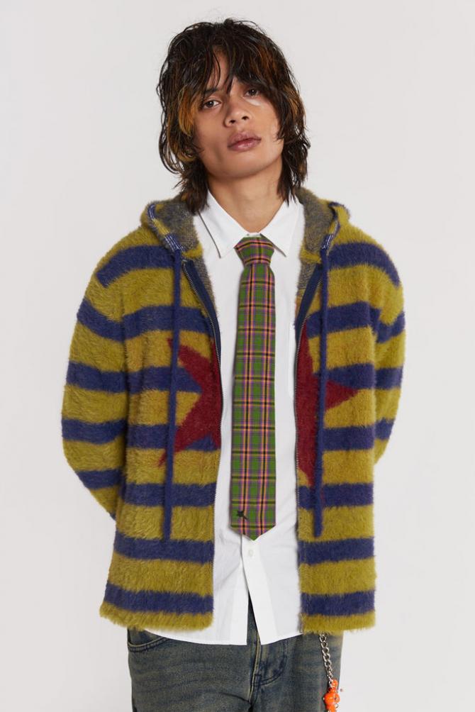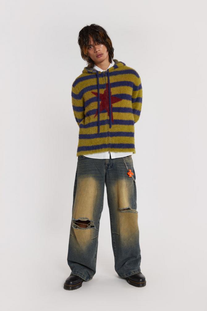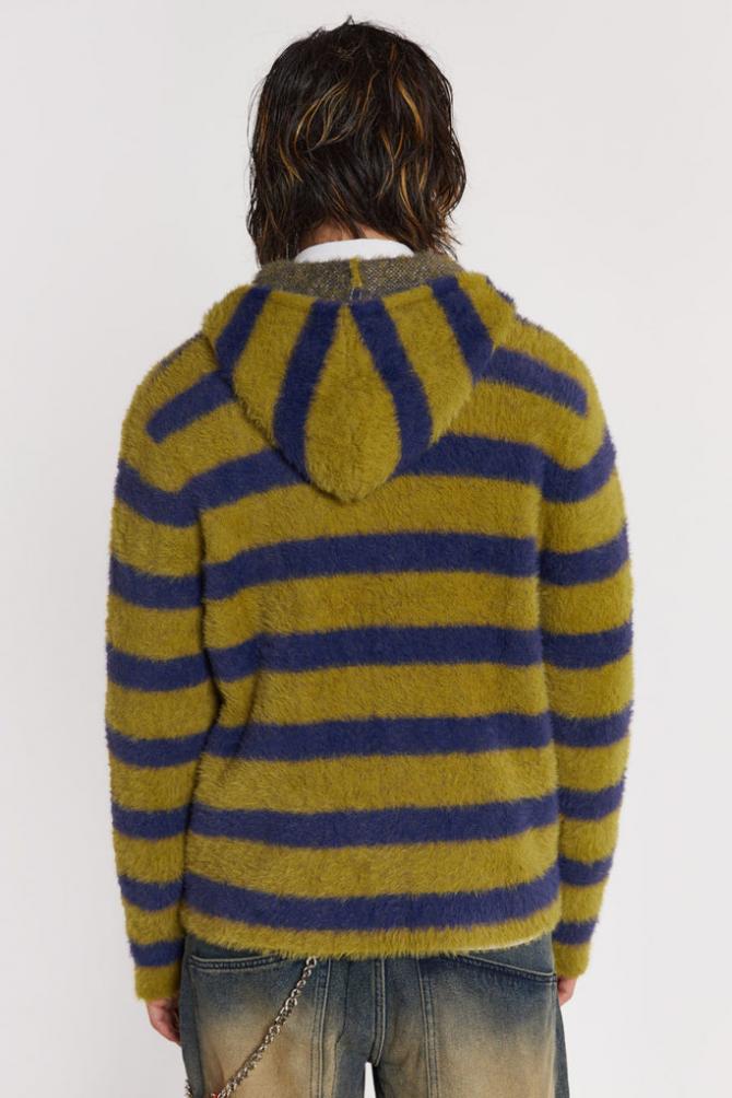 Descriptionkhaki Fuzzy Stripe Zip Through Khaki Fuzzy Mohair Style Knitproduct Code: Jmkw3082