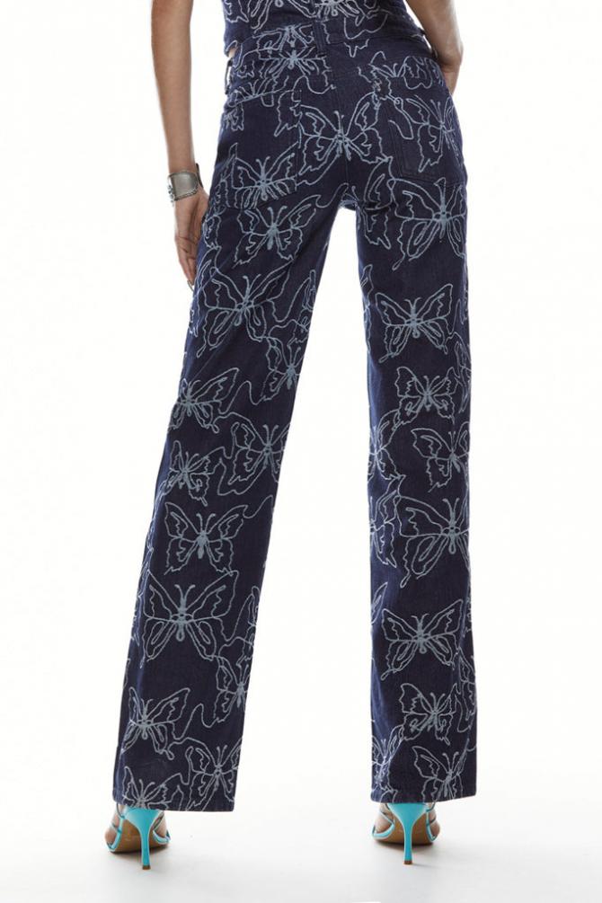 Descriptionpetite Blue Embossed Butterfly Denim Low Rise Boyfriend Fit Denim Jeans