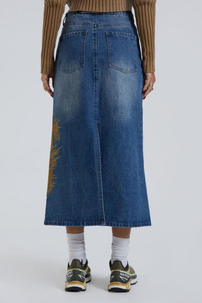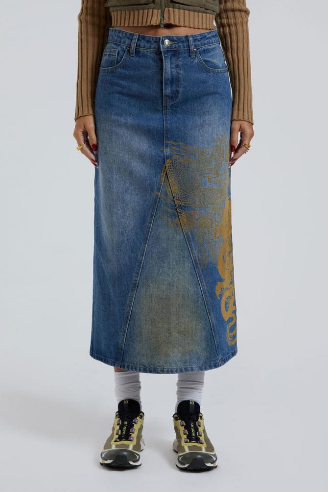Descriptiondragon Flock Print 00’S Denim Maxi Skirt About The Blueprint Collection