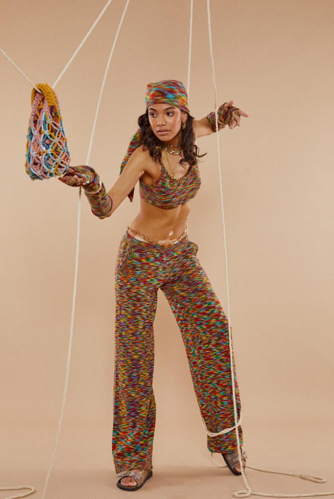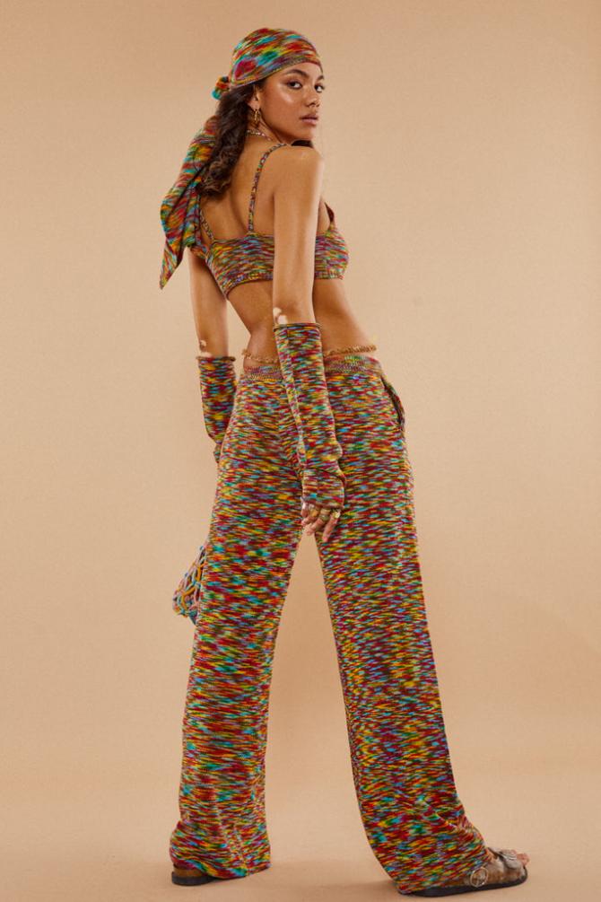 Description Turn Heads This Season Rocking Our Spacedye Knit Low Rise Wide Leg Joggers, Style With The Matching Top & Bandana!