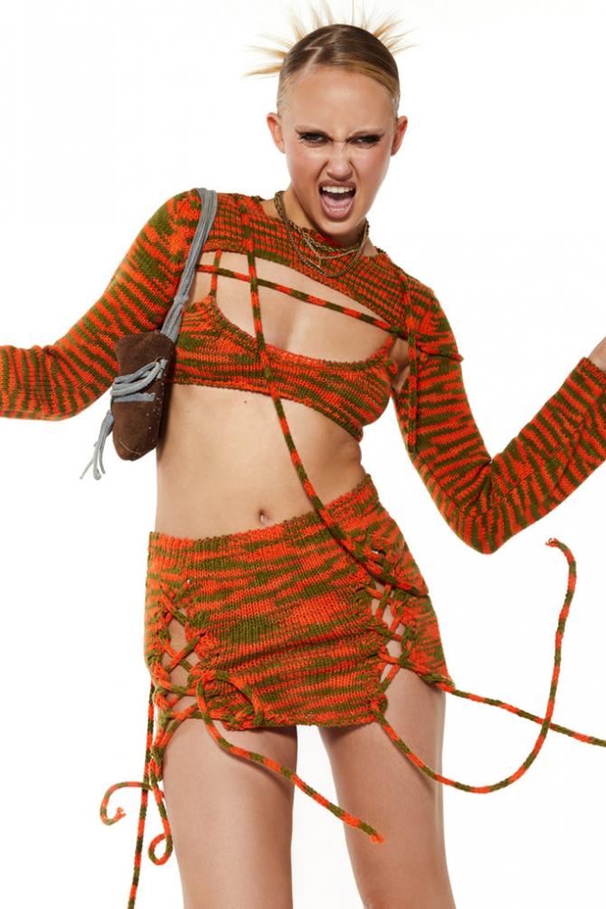 Description Chunky Green & Orange Knit Bralet With Detachable Shrug Overlay …