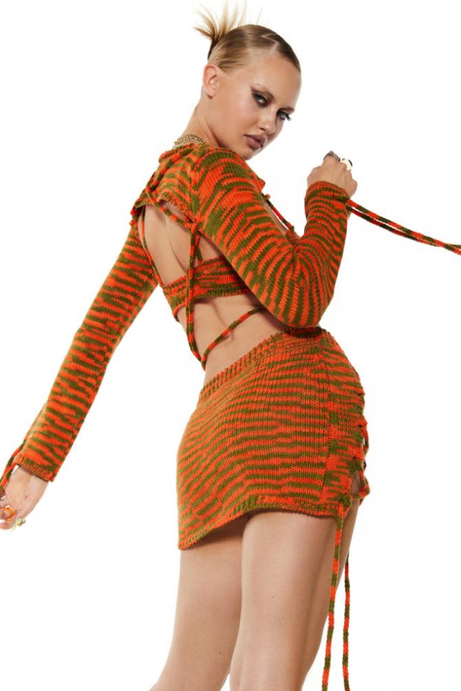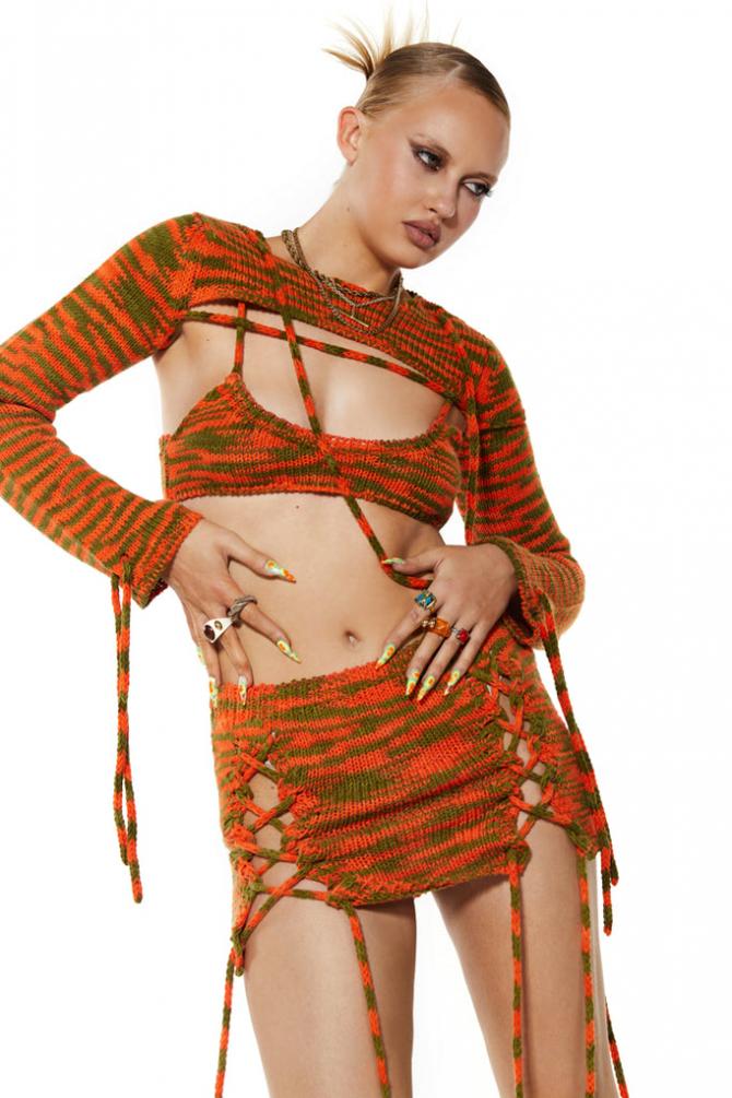 Description Chunky Green & Orange Knit Bralet With Detachable Shrug Overlay