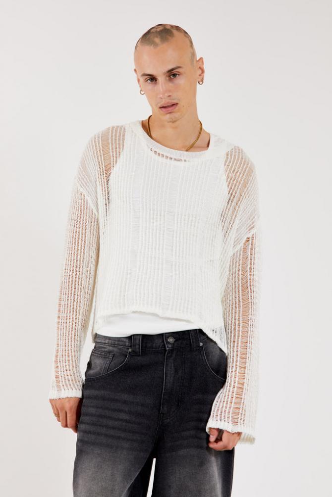 Knitwear | White Labyrinth Jumper – Jaded London Mens