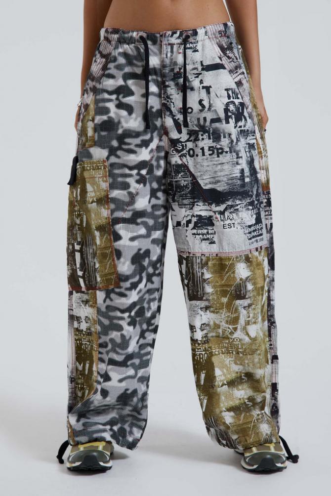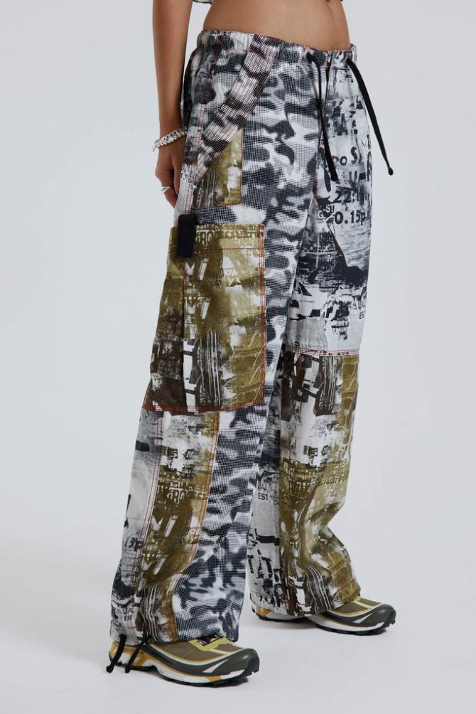 Descriptionmixed Grunge Print Patchwork Parachute Cargo Pants About The Blueprint Collection