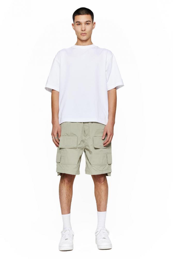 Descriptionstone Evd Drawstring Cargo Shorts Relaxed Fit Ten-Pocket Styling Elasticated Waistband With Adjustable Cotton Drawcord Mock Fly Front With Bar Tack Detail Inside Leg Measures 19.5 Cm Model Is 6 Ft And Wears A Siz…