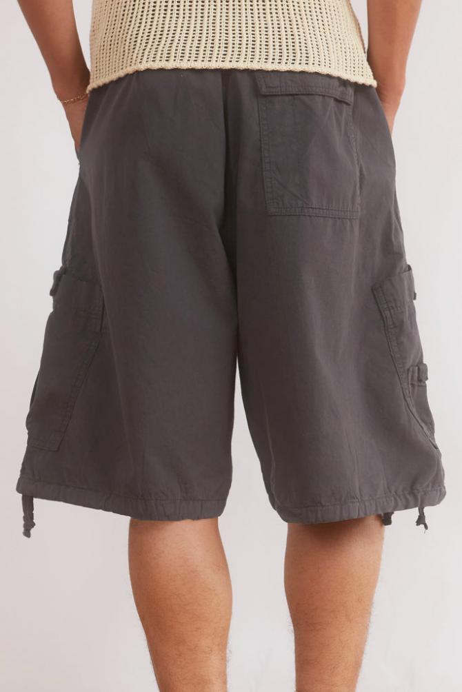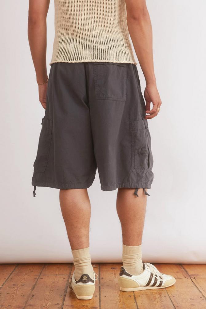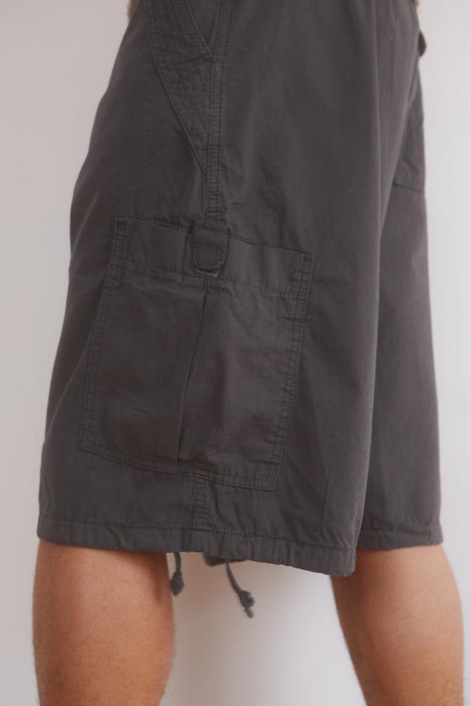Descriptionvintage Grey Oversized Cargo Shorts Six-Pocket Stylingelasticated Waistband W/ Adjustable Cotton Drawcord Through Metal Eyeletsmetal Zip Fly Front W/ Bar Tack Detail & Concealed Button Closureinternal Adjustable Cotton Drawcord At Heminside Leg Dartsinside Leg Measures 30Cmrelaxed Fitmodel Is 6 Ft 1 And Wears A Size M