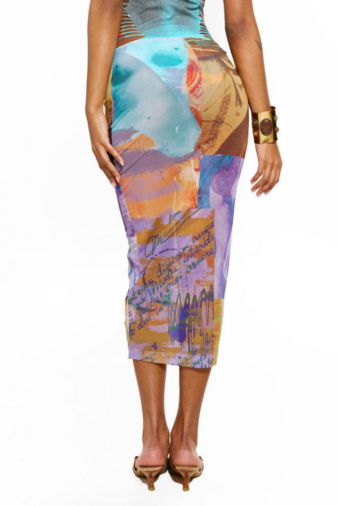 Descriptionstatue Mix Print Mesh Column Maxi Skirt