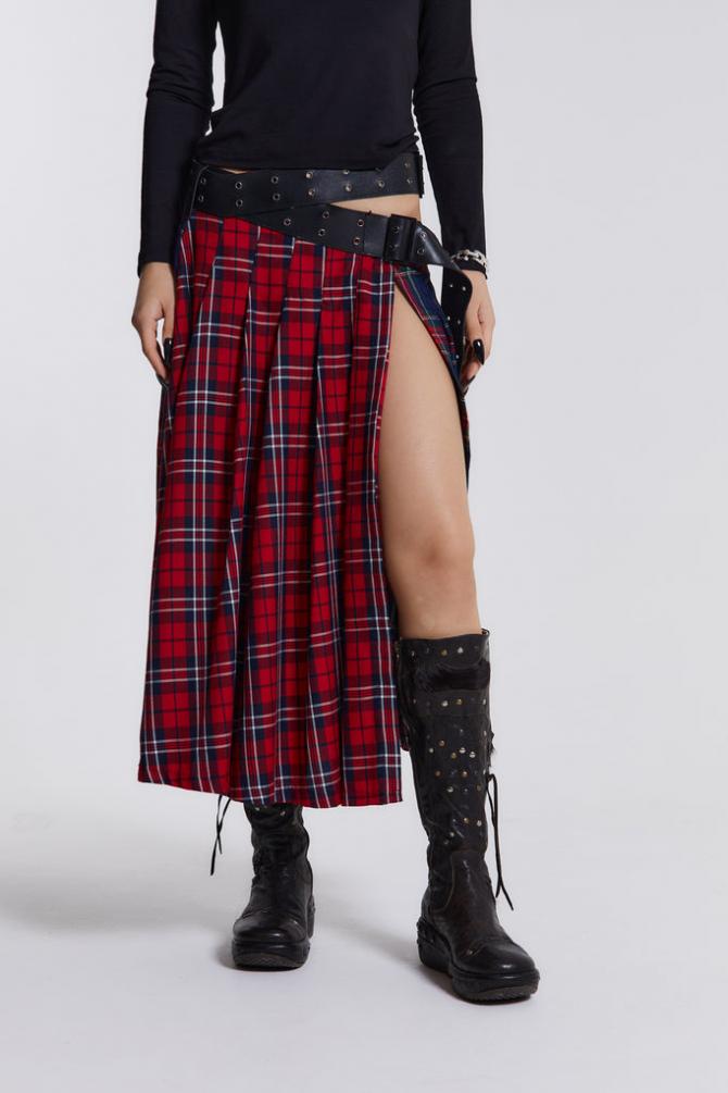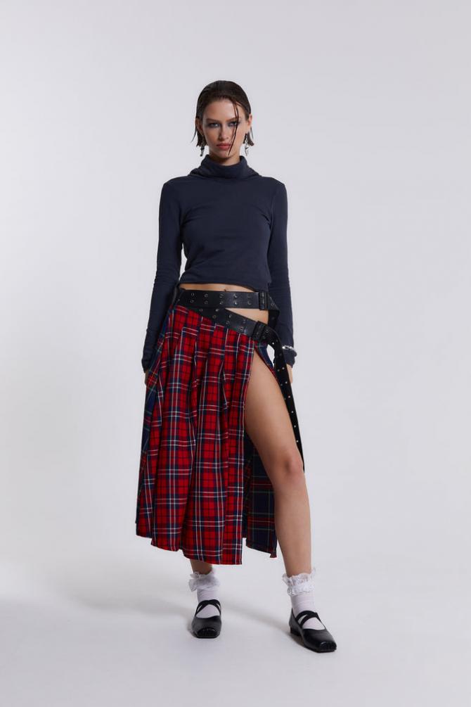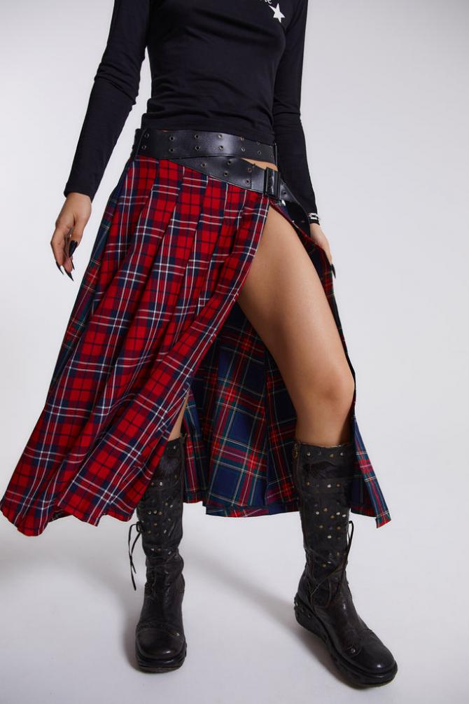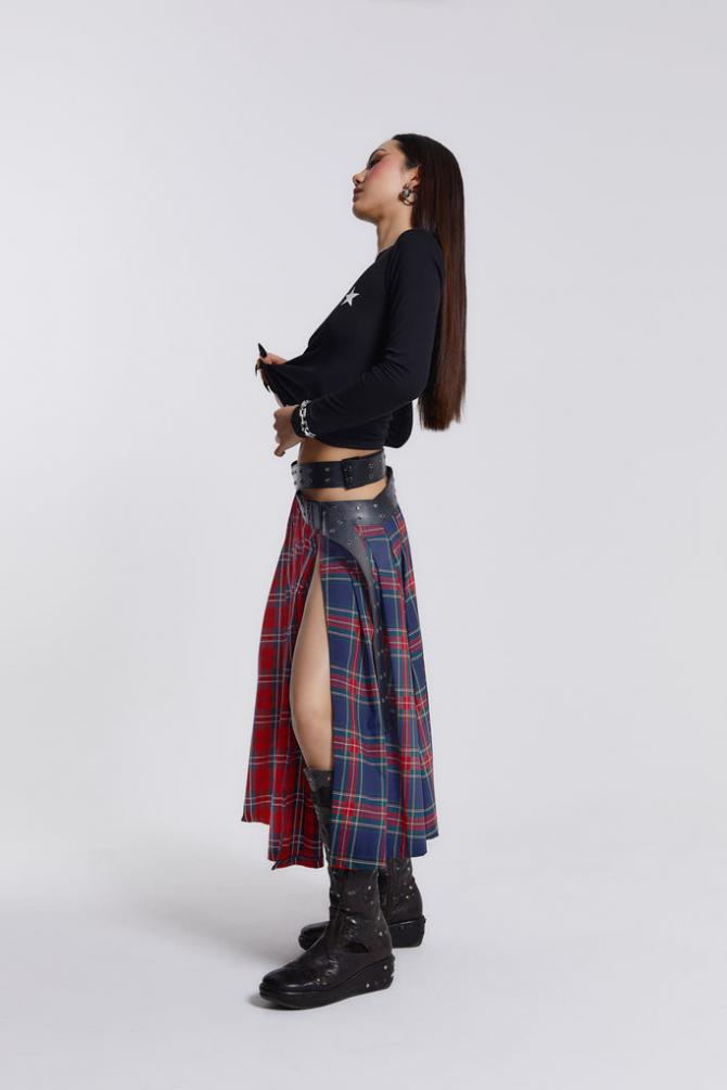 Descriptionmixed Tartan Split Midi Kilt With Buckle Detail Mixed Tartan Print Product Code: Jws2641