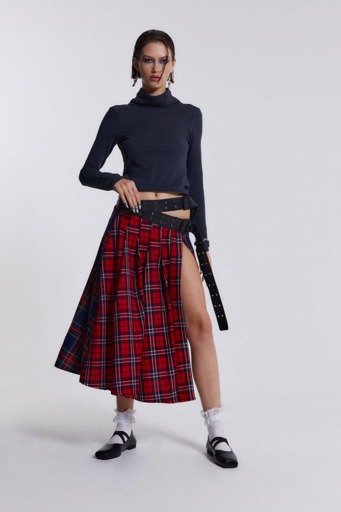 Descriptionmixed Tartan Split Midi Kilt With Buckle Detail Mixed Tartan Print Product Code: Jws2641 …