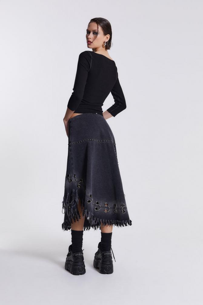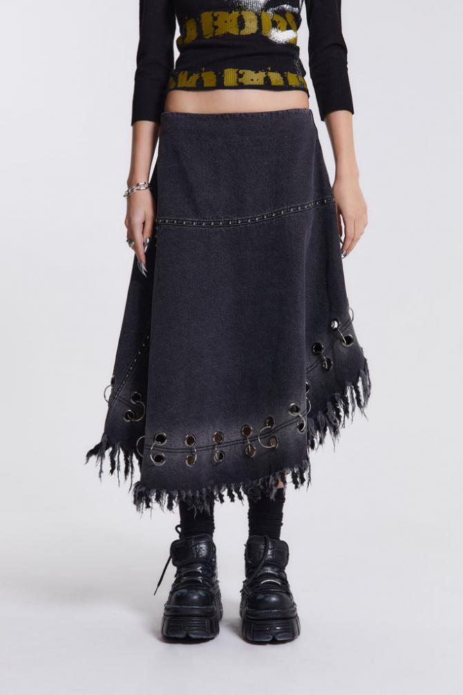 Descriptionfrayed Denim Skirt With Eyelet Detail Frayed Denimproduct Code: Jws2684