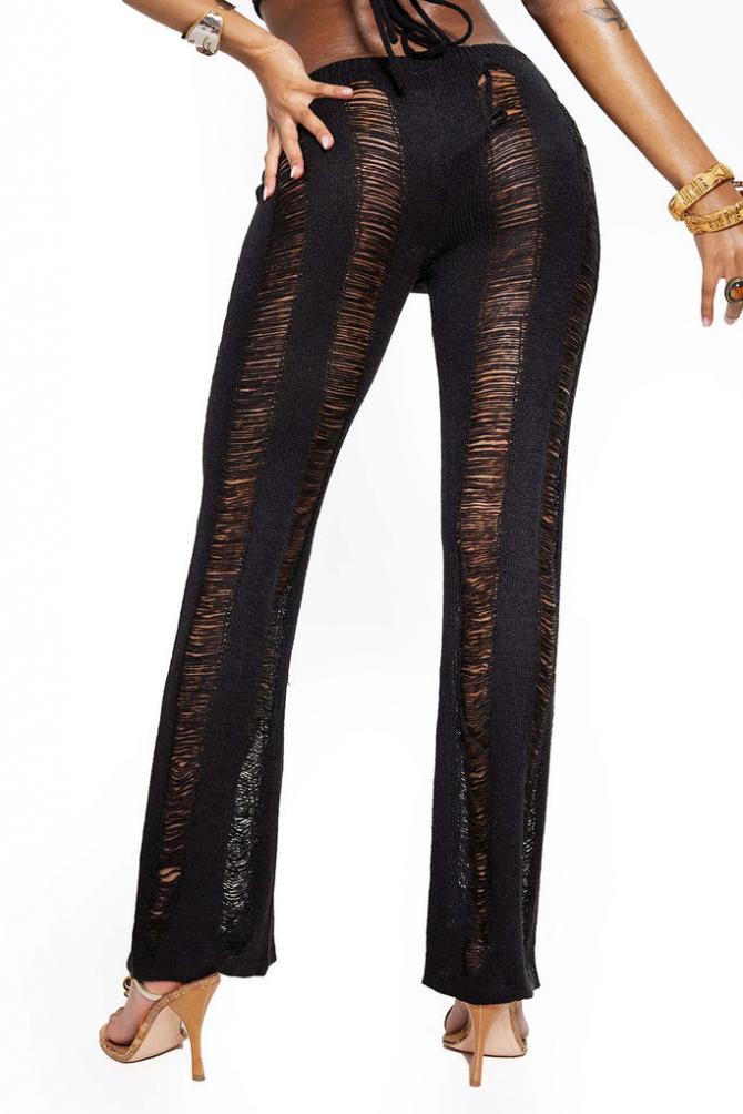 Descriptionblack Laddered Knit Flared Trousers  Elasticated Waistband  Laddered Knit  Knitted Fabric Inside Leg Measures 76 Cm Due To The Nature Of Thi…