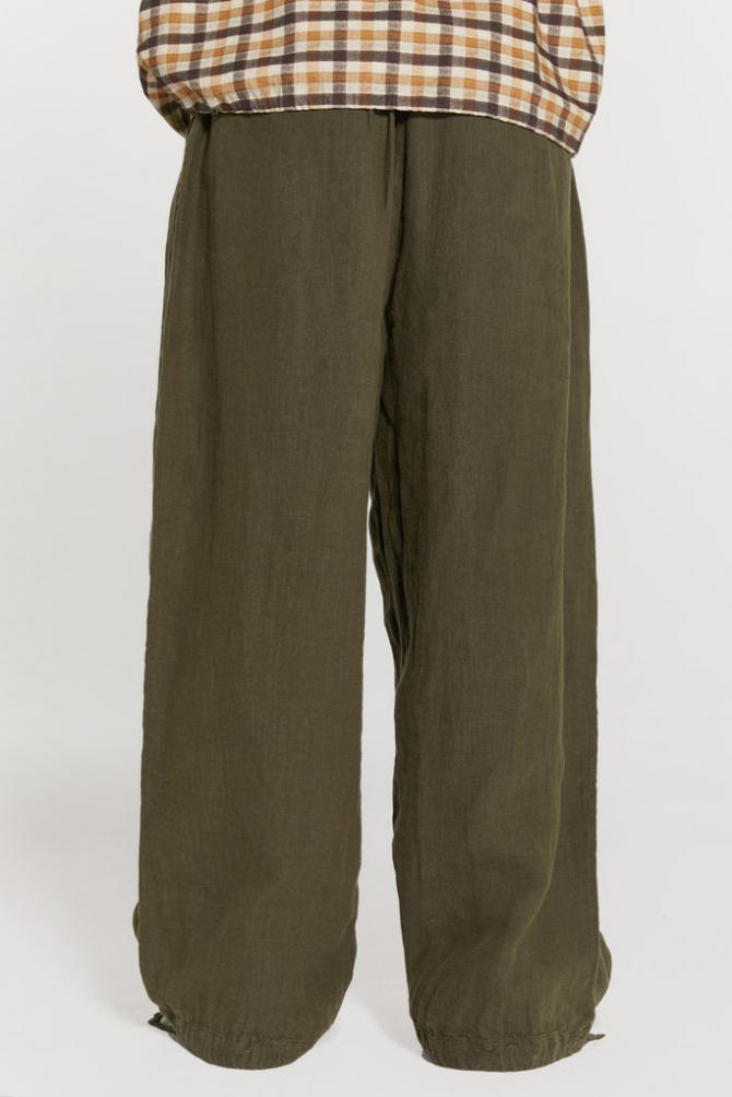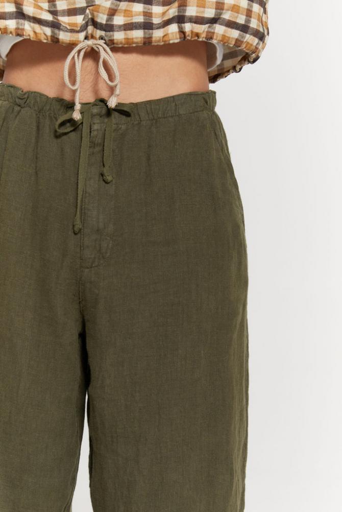 Descriptiongreen Wide Leg Linen Trousers X3 Pocket Stylingelasticated Waistband W/ Cotton Drawcordmetal Zip Fly Fasteningconcealed Button Closureinternal Drawcord At C…
